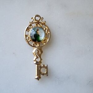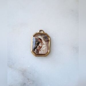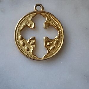 Elegant gold religious pendant set featuring intricate designs. Perfect for adding a touch of spirituality to your jewelry collection.