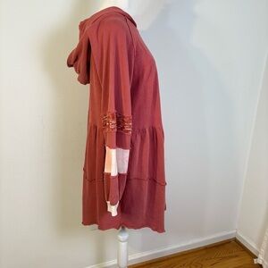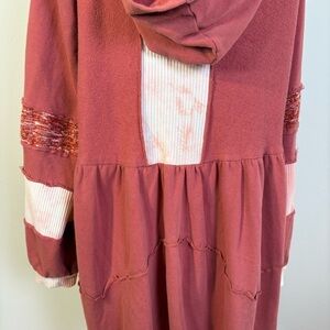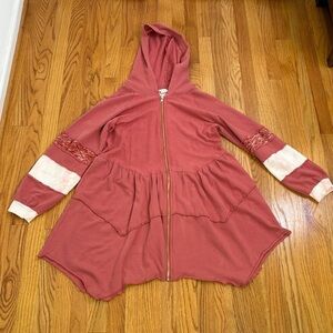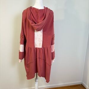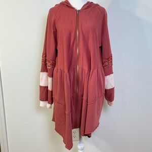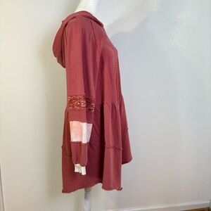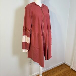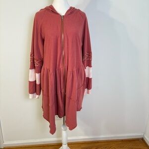 POL Boho Multimedia Tiered Tie Dye Inset Zip Tunic Hooded Jacket Hoodie BWT845 S