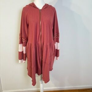 POL Oversized Longline Tiered Ruffle Zip Hoodie Tunic Hooded Jacket BWT845 S