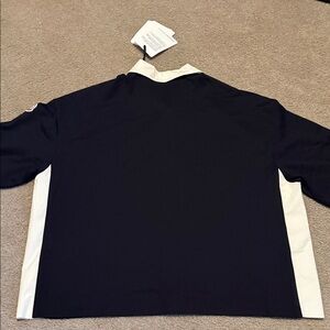 Stylish new with tags Moncler polo with a sleek black and white look. Ideal for casual and smart occasions. Has Moncler patch on the right sleeve. Tagged with authenticity chip and QR code link.