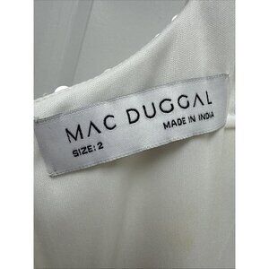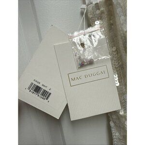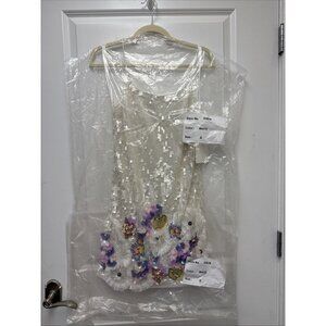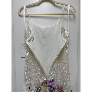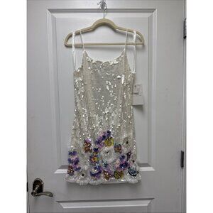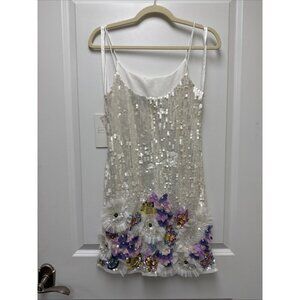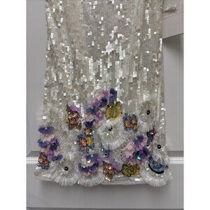 Mac Duggal White Sequin Mini Dress with Pastel Floral Appliqués