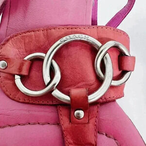Key Words: Y2K, 2000s, vintage Coach, pink, bright pink, neon pink, bubblegum pink, buckle, designer
