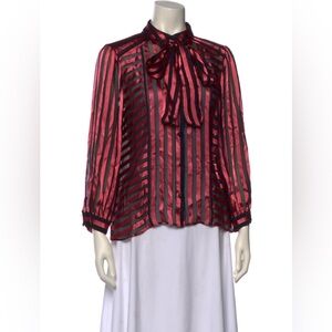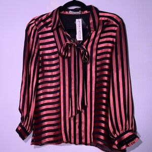 NWT Alice & Olivia Silk Pink and Black Striped Tie-Neck Blouse medium