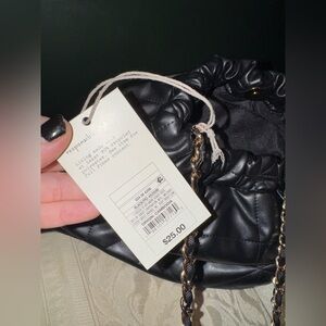 A New Day Black Quilted Drawstring Bag with Gold Chain