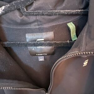 🔥🔥Worn once, if that. Excellent condition. Son did not like the branded arm tape. Tape zip hoodie by G Star. Straight fit, raised front hood with drawstring. Split kangaroo pockets.