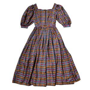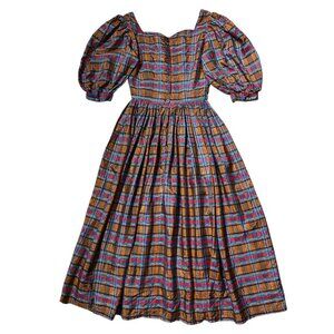 70s vintage plaid puff sleeve dress cottage victorian sweetheart Maxi acetate.