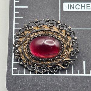 Antique Sterling Silver Purple Glass Brooch Pendant Rope Scroll Design Edwardian