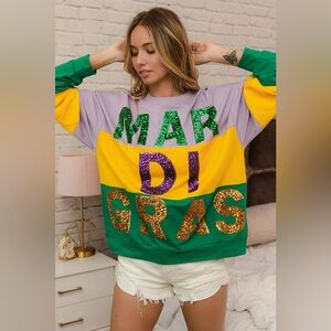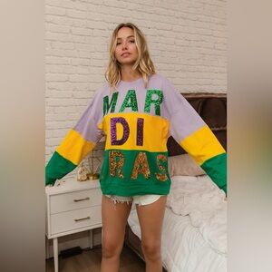 BiBi Sequin Mardi Gras Lettering Color Block Sweatshirt 10010075599