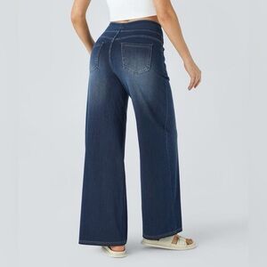 Halara Flex High Waisted Wide Leg Washed Jeans Dark Blue Size Small