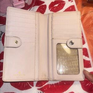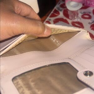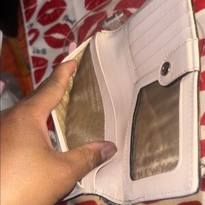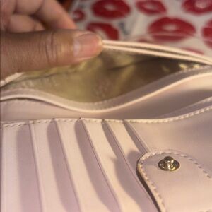 Stylish blush wallet with a sleek bow detail. Ideal for a touch of sophistication.