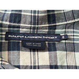 Ralph Lauren Sport Shirt Womens Size 8 Slim Fit Blue White Plaids Long Sleeve