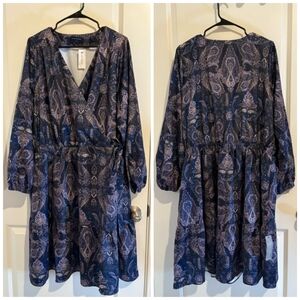 Lane Bryant Navy Paisley Midi Dress size 22 NWT Holiday Party Dress Long Sleeves