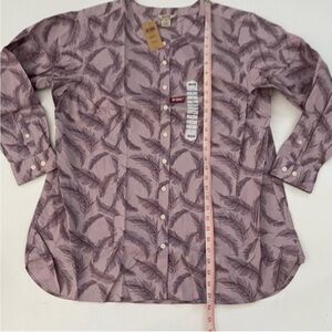 New Duluth Wrinkle Fighter Tunic Shirt Purple Feather Print