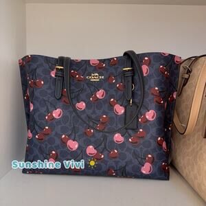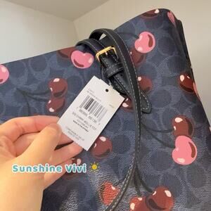 NWT Coach Mollie Tote In Signature Canvas With Cherry Print CAA73