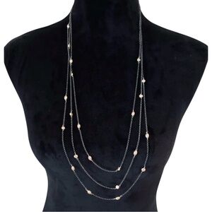NEW NWT J. Jill Gold Bead and Gunmetal Black Chain Layered Necklace $49 Retail