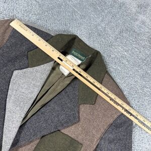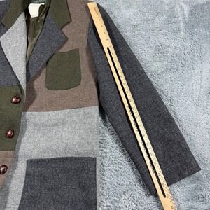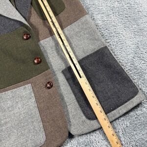 Vintage 90s Wool Patchwork Colorblock Blazer Jacket Women Size 4 Leather Buttons