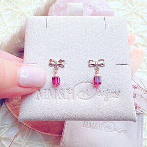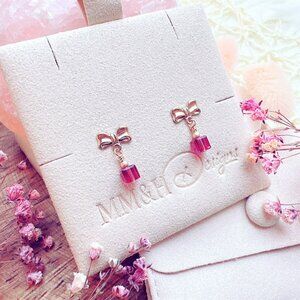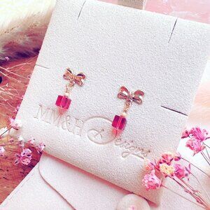 ♥ delicate and cute 14k gold-filled bow stud earrings (bow size is 9x6.3mm) with Swarovski crystal cube (4mm)