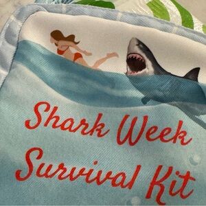 Organize your essentials with this Shark Week Survival Kit cosmetic bag. Featuring a playful shark design, this blue pouch is ideal for travel or daily use.