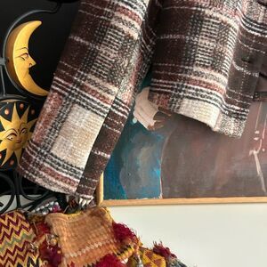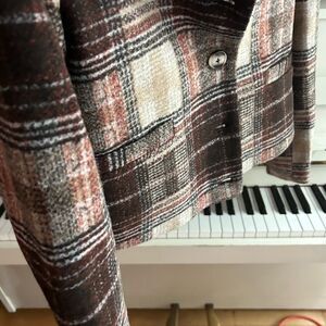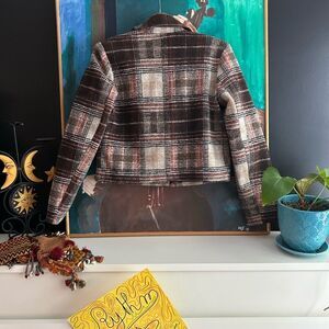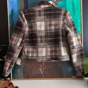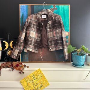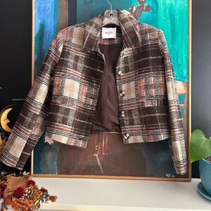 Ricki's Plaid Cropped Blazer in Brown and Cream XS