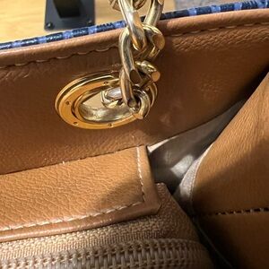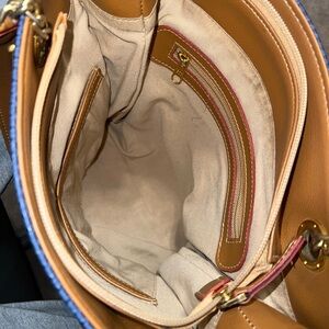 Monica Sanches Navy and Tan Snakeskin Tote