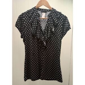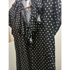 Retro, vintage button down. Ruffled black polka dot blouse size large