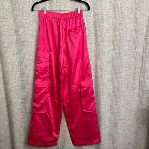 Nordstrom HT360 Collective Satin Cargo Pants Wide Leg Flowy High Rise Pink Small