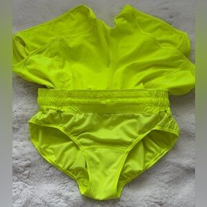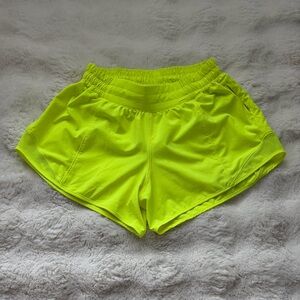lululemon Hotty Hot High-Rise Lined Zip Pocket Neon Running Shorts - 6 ( S )