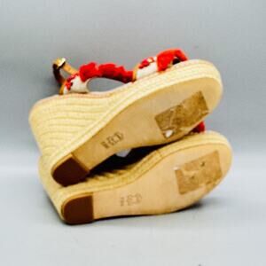 Tory Burch Sandals Womens 7.5 Beige Linen Espadrille Platform Wedge Tassel Shoes