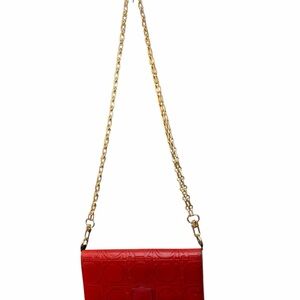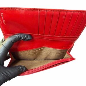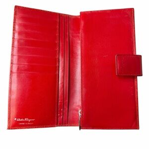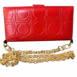 Ferragamo Gancini Embossed Red Long Wallet W/Unbranded Chain Insert (A352)