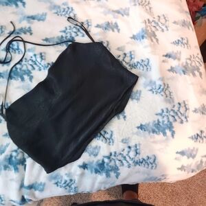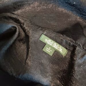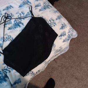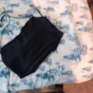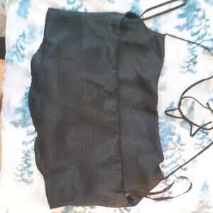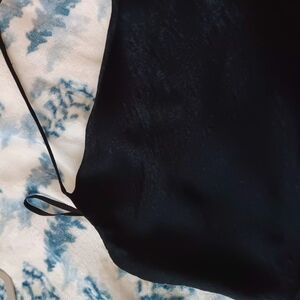 Classic black cami top with thin adjustable straps. Soft, lightweight fabric for comfortable all-day wear. Versatile silhouette that pairs easily with jeans or skirts. Easy-care piece for a polished casual look.