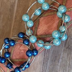 Fabulous, Fun, & Good Pre-Loved Vtg Condition Vintage Beaded Silver Tone Accordion Bracelets