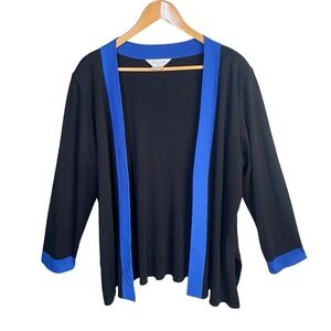 Misook Black Blue Trim Open Front Cardigan Sweater Womens Plus Size 1X