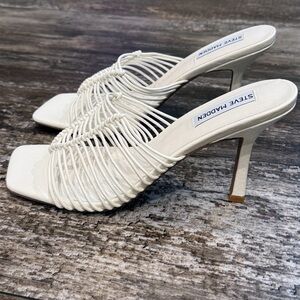 Steve Madden Heels Bonds Sandals Square Toe Slip On Womens Size 7.5 White NIB