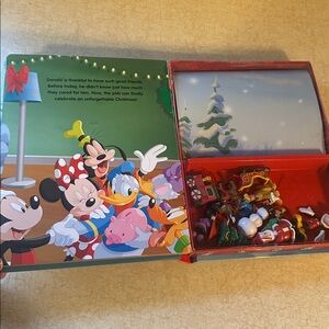 Features a Mickey and friends storybook, six ornaments, four figurines and a Christmas story play mat