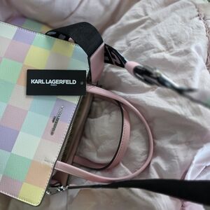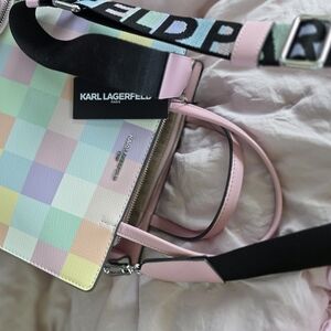 Karl Lagerfeld with pastel checkered design. Features a bold strap very clean sold as is