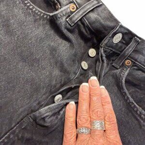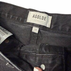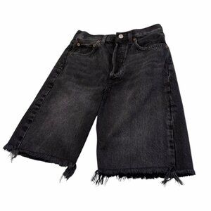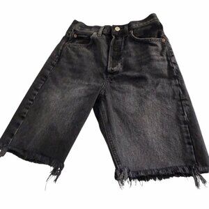 AGOLDE Women's Black Denim Shorts Raw Hem Button Fly Sz 24