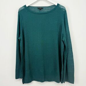 J. Crew Green 100% Linen Slouchy Crew Neck Tunic Sweater