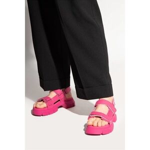 GANNI Recycled Rubber Chunky Logo Pink Platform Sandal 40