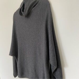 Slouchy ribbed knit mock neck sweater in charcoal grey.
