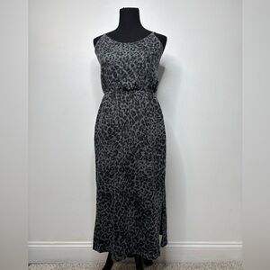 Old Navy Women’s Leopard Print Slub Knit Waist-Defined Midi Dress Size M Gray Animal