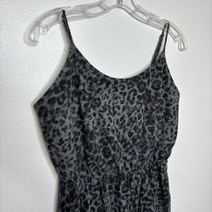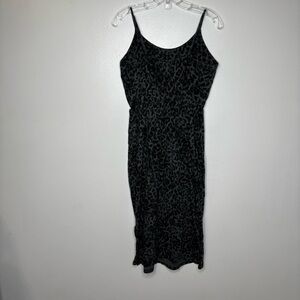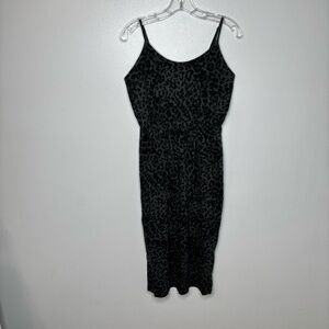 Soft 100% cotton cami-style midi dress from Old Navy featuring a gray animal print, elastic waist, and side slit hem. Casual, lightweight, and easy to style for everyday wear. Small faint spot near right hip/thigh (see photo).