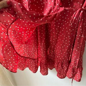 Réalisation Alexandra Red Star Print Silk Wrap Dress