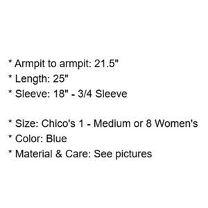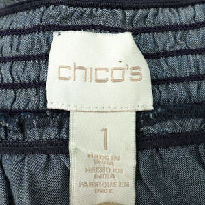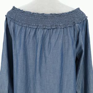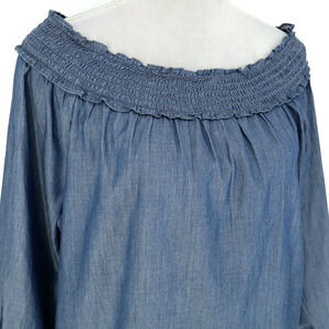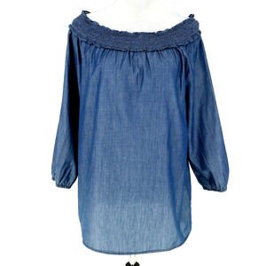Chicos Top 1 Womens Medium Blue Cotton Off Shoulder Blouse Boho Romantic