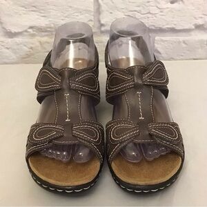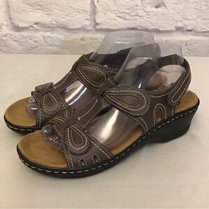 Clarks 8 Lexi Q Walnut Women’s Leather Footbed Sandals Brown Comfort Shoes
