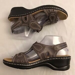 Clarks Size 8 Lexi Q Walnut Women’s Leather Footbed Sandals, Brown Comfort Shoes. Preowned. Nice condition.