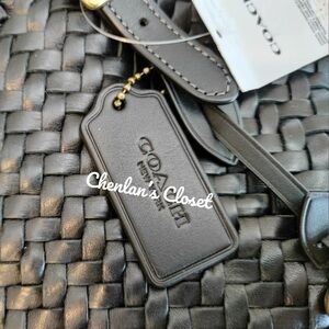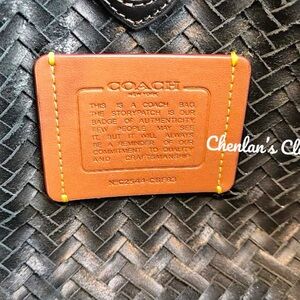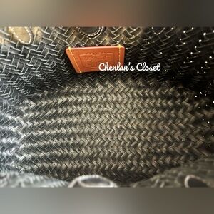Coach Black Woven Leather Swing Tote Carryall Shoulder Bag Purse