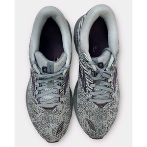 The Brooks Women's Adrenaline GTS 19 Road Running Tennis Shoes in size 11 are stylish and comfortable athletic sneakers perfect for activewear and casual occasions. Featuring a breathable mesh upper, cushioned foam insole, and rubber outsole, these shoes offer support for activities like walking and running. The geometric gray and purple color scheme, along with the signature Brooks logo, make these sneakers a fashionable and functional addition to your athletic wardrobe. Designed for the modern woman on the go, these shoes combine style with performance for all-day comfort.