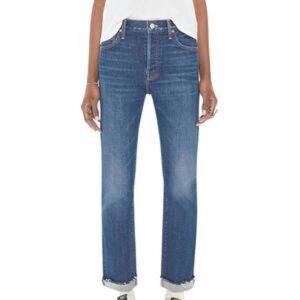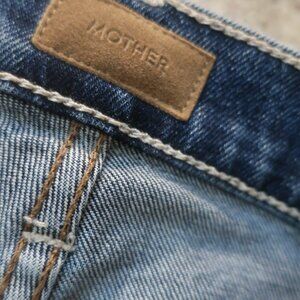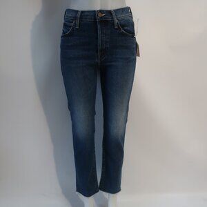 NWT Womens MOTHER Blue The Scrapper Cuff Ankle Fray Smash Banjo's Denim Jeans 24