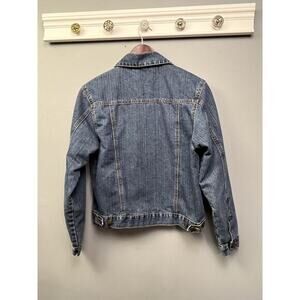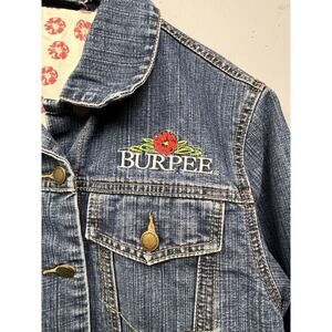 Burpees Denim Jacket Womens Medium Trucker Jean button front floral lined pocket