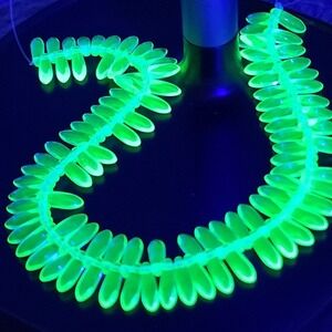 100pcs Czech Glass Dagger Beads, Uranium Glass, UV light reactive